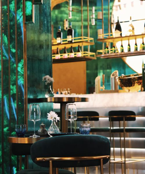 Ein Ort, an dem beeindruckende Architektur auf modernes, mystisches Design trifft. Edler Jade Stein, stilvolles Interior und ein gehobenes Ambiente schaffen eine Atmosphäre voller Ruhe und Raffinesse. Die großzügige Außenterrasse mit ihrem besonderen Flair lädt zum Verweilen ein und macht jeden Besuch zum Erlebnis unter freiem Himmel.